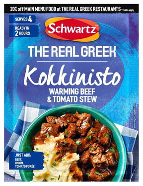Experience Authentic Greek Flavour with Schwartz The Real Greek Kokkinisto Warming Beef & Tomato Stew Mix