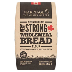 Elevate your home baking with Marriage's Millers Very Strong Wholemeal 100% Canadian Flour. Milled from the finest Canadian wheat, renowned for its exceptional protein content, this 1.5KG bag of wholemeal flour is the ultimate choice for crafting robust, flavourful, and beautifully risen loaves. Its 'very strong' classification ensures superb elasticity and structure, making it a favourite among professional bakers and home enthusiasts alike.
