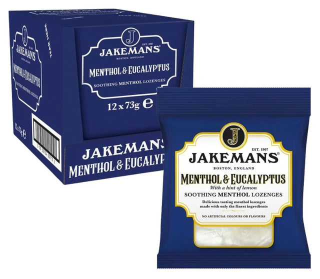 Discover the classic, comforting power of Jakemans Menthol & Eucalyptus Lozenges, now available in a convenient case of 12 x 73g bags. Renowned across the UK for their distinctive flavour and effective soothing properties, these traditional British lozenges are an essential for any household, especially during cold and flu season.